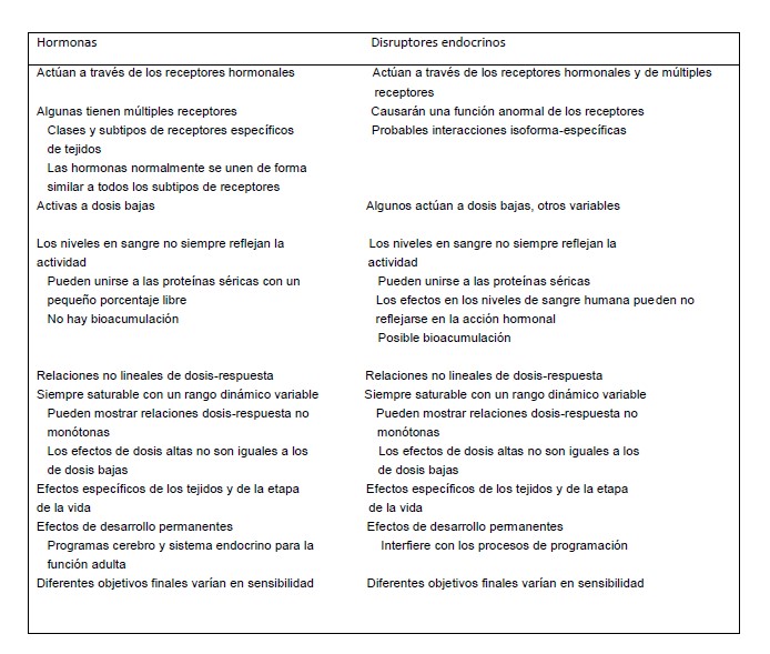 Tabla 1 - Comparación de las hormonas y los disruptores hormonales [63,105]