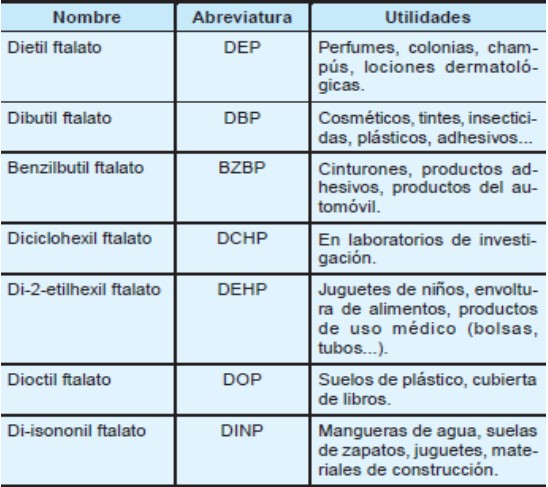 Tabla 4 - Tipos de ftalatos