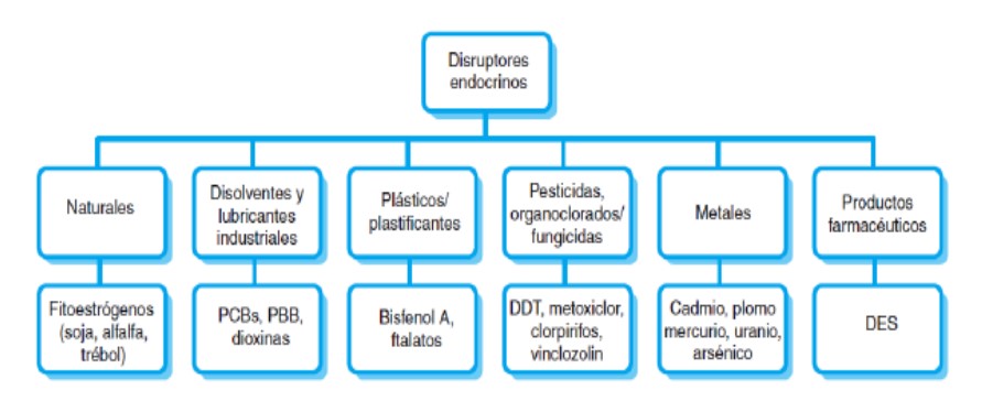 Figura 1 - Clasificación y ejemplos de los disruptores endocrinos